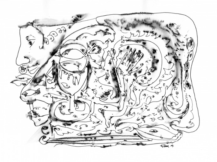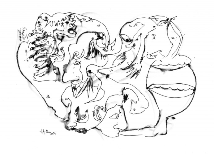 Heute das fünfte Mal. Soll sie zu zählen aufhören. Diesmal schnallen sie sie an einen Friseurstuhl, am Gang. Keine Bahre, Keine Froschperspektive. Das kalte Material in der Nase. Die Sonde wird durch die Nase geschoben, sie würgt, da hängt etwas aus ihrem Mund raus, das ist ihre langgewordene Zunge, nein, ist ein Luftballon, nein, ist die Sonde selbst. Durch das Würgen wieder zum Mund raus. Bindet ihr den Kopf fest, sie schnallen ihr breite grüne Stoffgürtel an die Arme, um den Oberkörper. Das Hirn steckt jetzt zwischen zwei Ecken. Egal. Da ist eine Doping- Substanz in dem Essen drin, damit sie nicht umklappt, damit sie ihre Kraft behält, sie wird zwanghaft aufrecht erhalten, wach.
